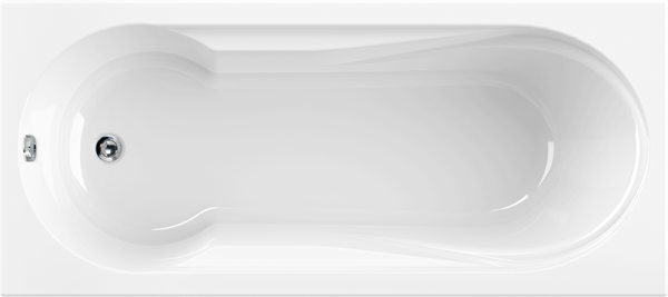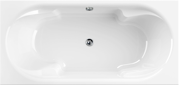 Ergonomisch gestaltete moderne rechteckige Badewannen mit integriertem Sockel, Überlauf-Ablaufgarnitur und nahtlos verbundener Schürze. Erhältlich in zwei verschiedenen Größen.