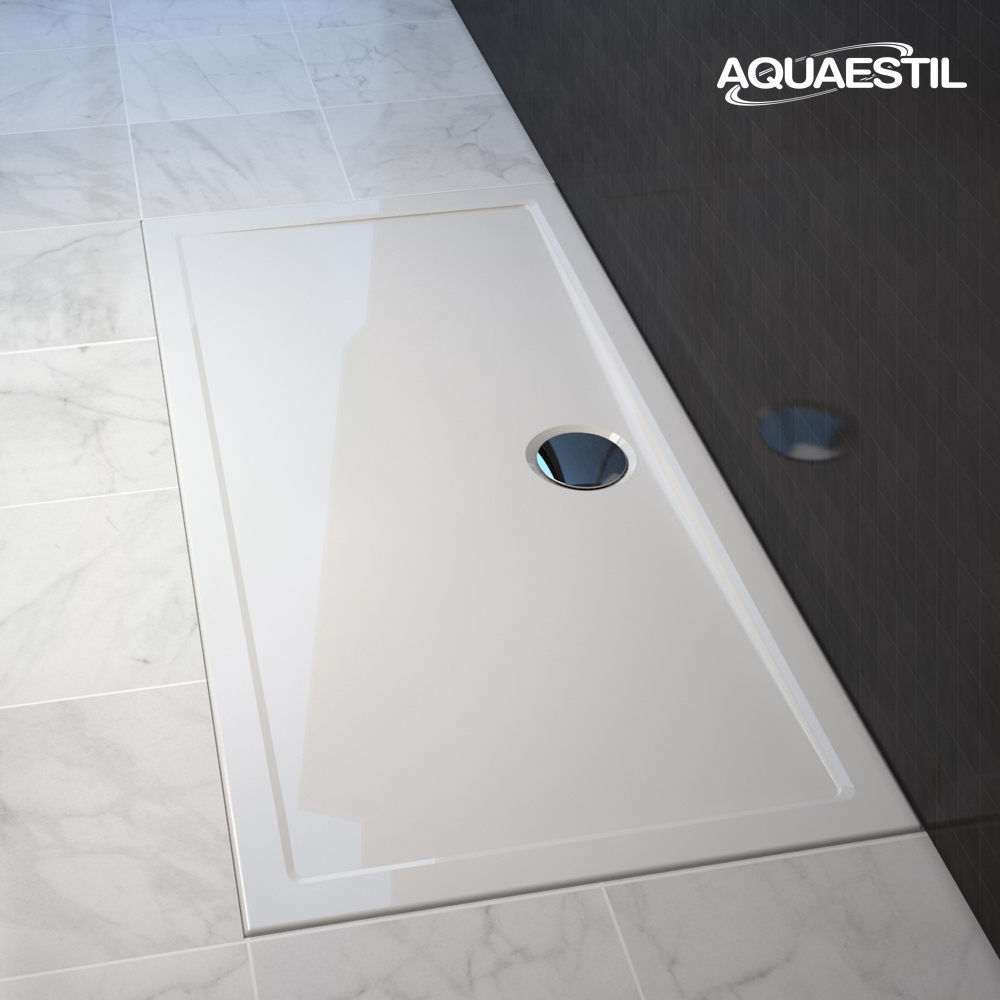 Duschwannen aus Gussmarmor bieten den starken Eindruck einer soliden Oberfläche und ein attraktives Design mit scharfen Linien. Bestimmte Modelle von Aquaestil Duschwannen aus Gussmarmor können werkseitig oder unabhängig innerhalb bestimmter Abmessungen zugeschnitten werden.