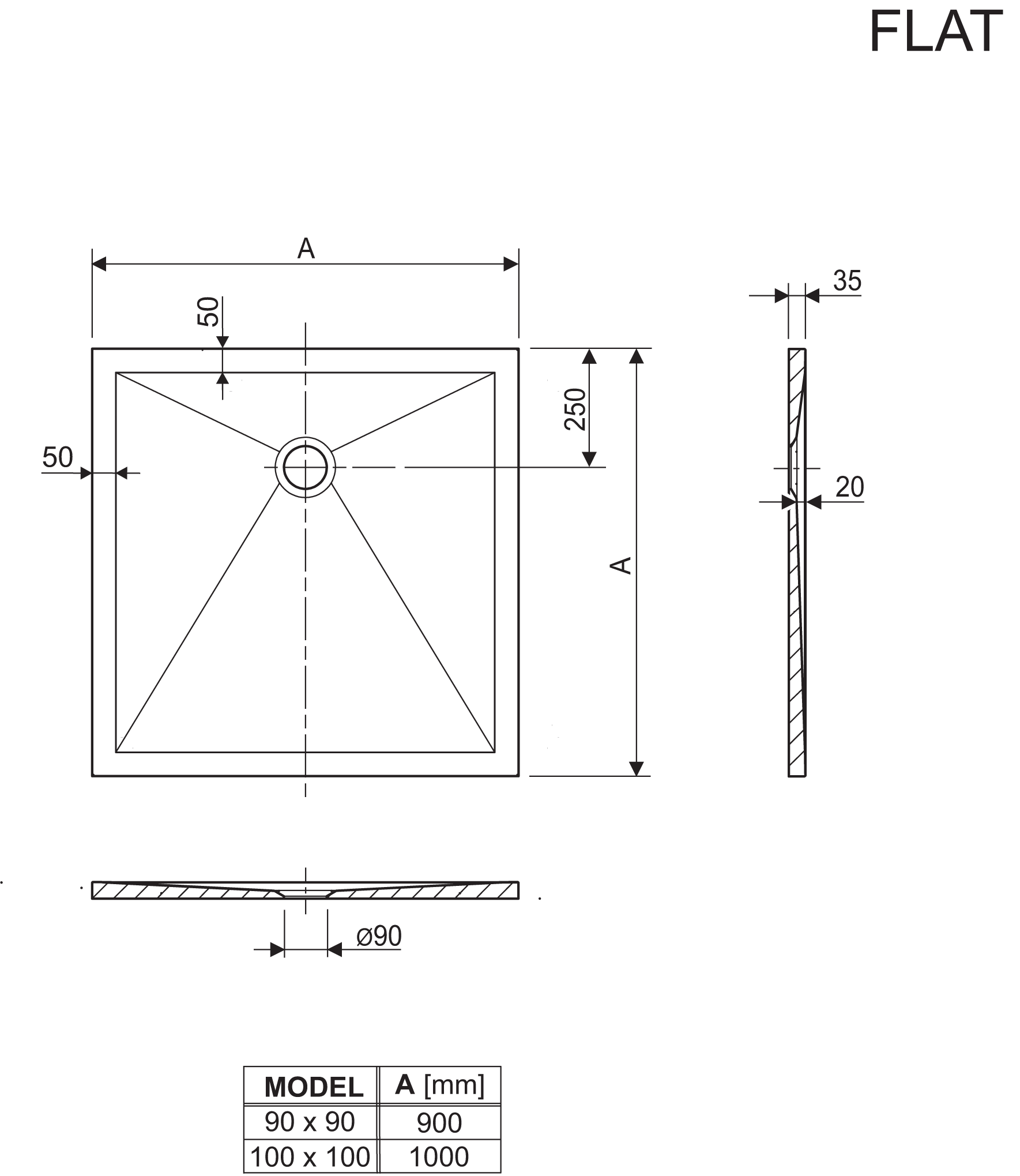 Flat is a very shallow shower bath made of cast marble and largely intended for installation below floor level. The shower bath’s material gives it its unsurpassed strength and a shiny surface that is easy to clean and maintain. This shower tray is available in white, black and grey color with shiny effect.