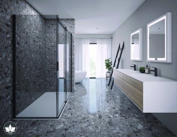 • ASTONE seamlessly connected plates in white mat effect on the bottom of the composition and lateral sides.
