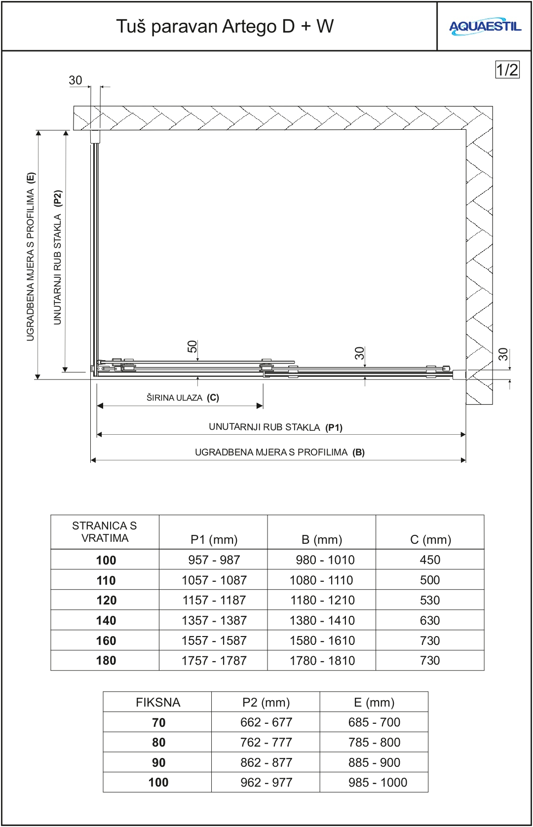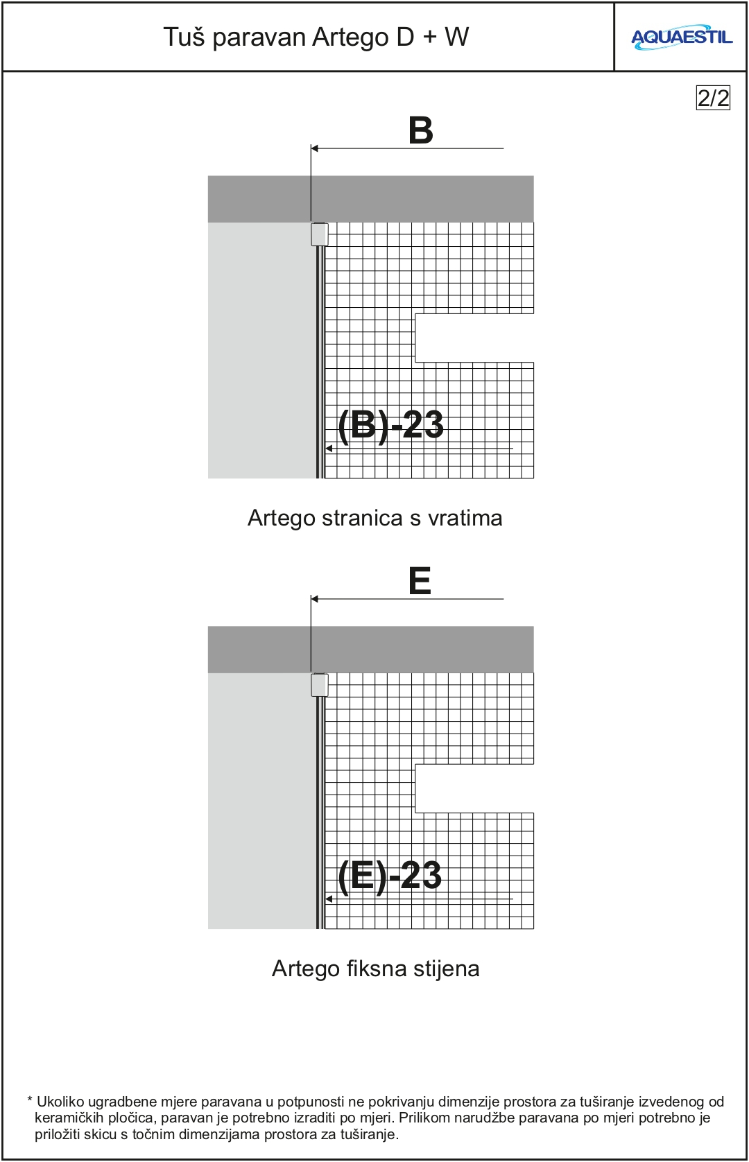 - Se la parete viene fissata alle piastrelle, e non al piatto doccia, all’ordine va allegato anche il disegno dello spazio doccia con l’indicazione esatta delle misure.