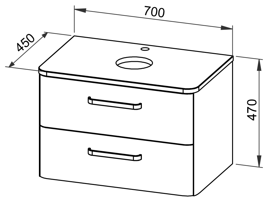 - Omarice Charm Top so standardno opremljene s ploščami iz litega marmorja, pripravljenimi za nadgradne umivalnike TOP 45. Plošče je mogoče dobaviti brez odprtin za umivalnike in mešalnike ali z odprtinami v drugih položajih v skladu s skico, ki jo priložite ob naročilu.