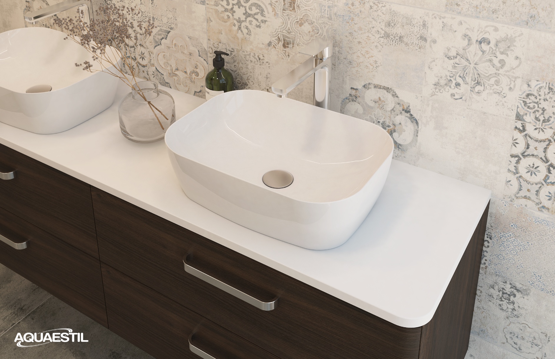 Umivalniki kopalniškega pohištva Aquaestil so izdelani iz litega marmorja ali, pri nekaterih linijah, iz keramike. Za čiščenje in vzdrževanje umivalnikov Aquaestil lahko uporabite Aquaestil sredstvo za čiščenje akrilnih in steklenih površin ali standardni tekoči kopalniški detergent. Za odstranjevanje vodnega kamna priporočamo alkoholni kis ali sredstva namenjena čiščenju vodnega kamna, ki ne vsebujejo mikrogranul ki bi lahko praskala površino umivalnika.