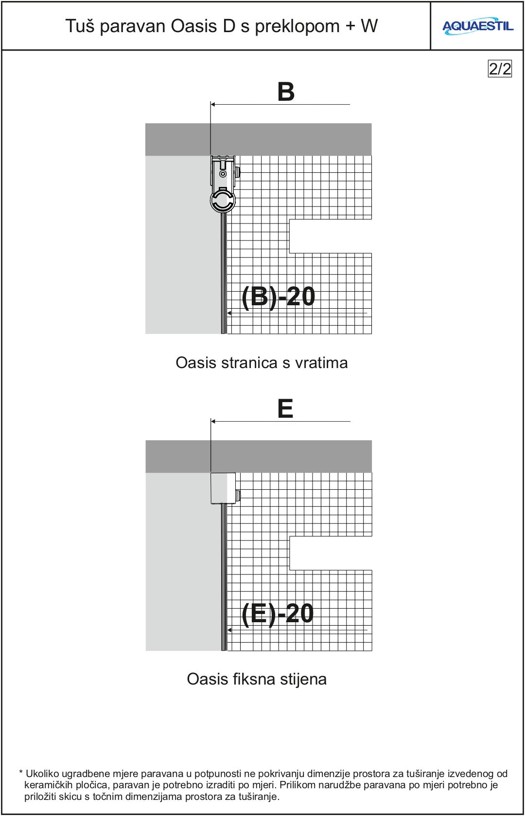 - Če se paravan postavi na ploščice, ne pa na tuš kad, je treba ob naročilu dostaviti načrt s točnimi dimenzijami prostora za tuširanje.