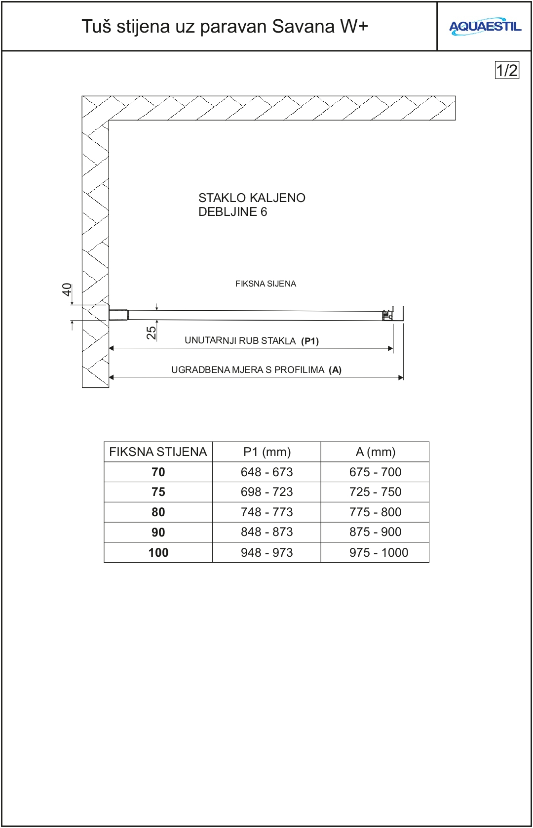 - Če se paravan postavi na ploščice, ne pa na tuš kad, je treba ob naročilu dostaviti načrt s točnimi dimenzijami prostora za tuširanje.
