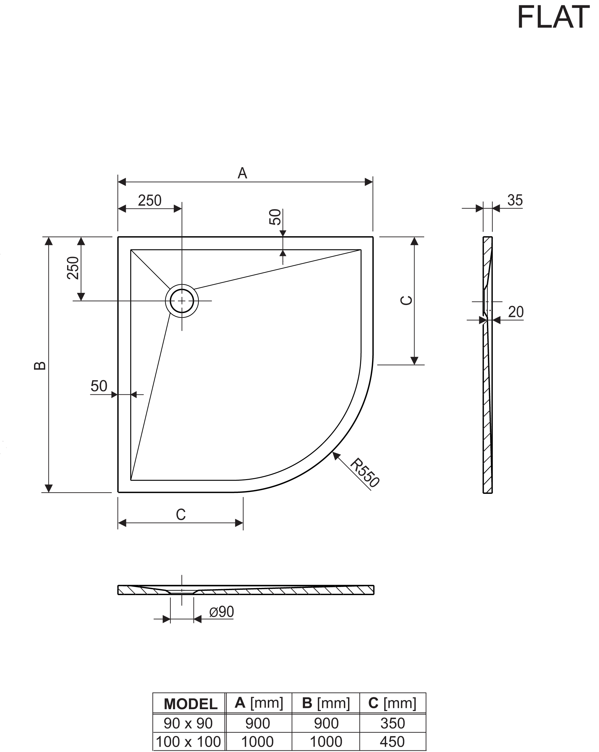 Flat je izredno plitva tuš kad, narejena iz litega marmorja in prvenstveno namenjena vgradnji na ravni tal. Material, iz katerega je narejen, ji daje nepremostljivo čvrstost in sijajno površino, ki se zlahka čisti in vzdržuje. Ta tuš kad je na voljo v beli, črni in sivi barvi s sijočim učinkom.