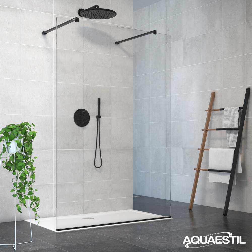 Zenith is a fixed glass wall that is installed parallel with the wall adjacent to the shower tray . It can be combined with one of Aquaestil’s ultra-flat shower trays or just with tiles to create the elegant “walk-in” bathroom concept.