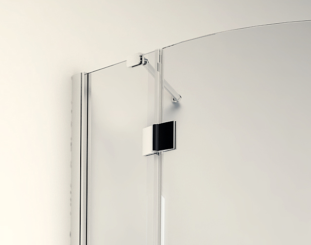 The asymmetrical semicircular version of the modern Aurora glass screen is intended for installation on the semicircular asymmetrical version of the Teso shallow shower tray or on ceramic tiles. Tempered glass 6 mm thick, revolving doors with lift system and quality magnet seals and a protective strip at the junction of the door and the shower ensure maximum functionality.