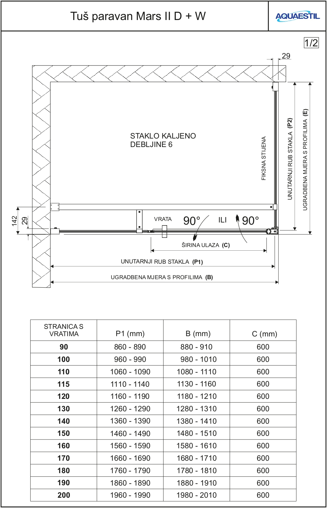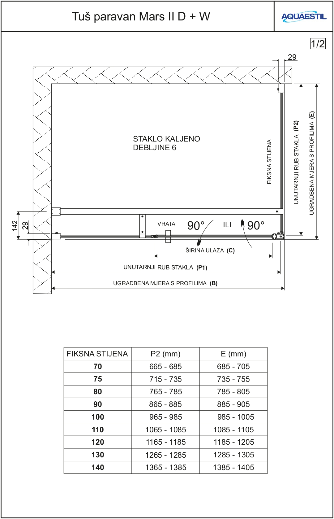 Mars II D+W is a quality shower screen that consists of a fixed wall "W" and a "D" side which is made of a fixed wall and a hinged door. The screen is equipped with an elegant round profiles and a 6 mm glass screen that is factory-treated with anti-limescale coating. It is possible to define door opening direction (inwards or outwards) during the mounting process.