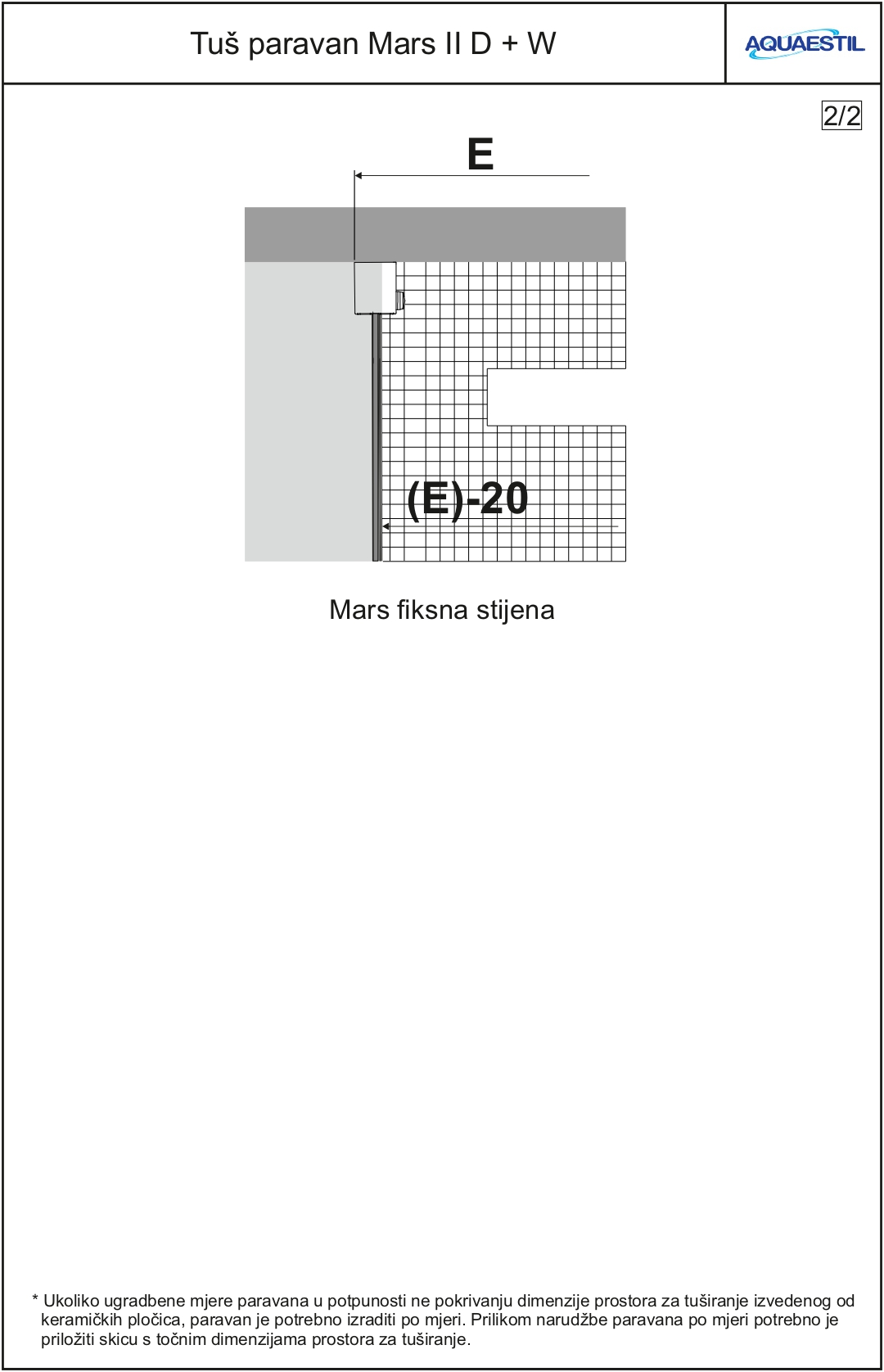 - If the screen is intended to be installed on tiles and not to the shower tray, the order has to include a drawing with exact dimensions of the showering area.