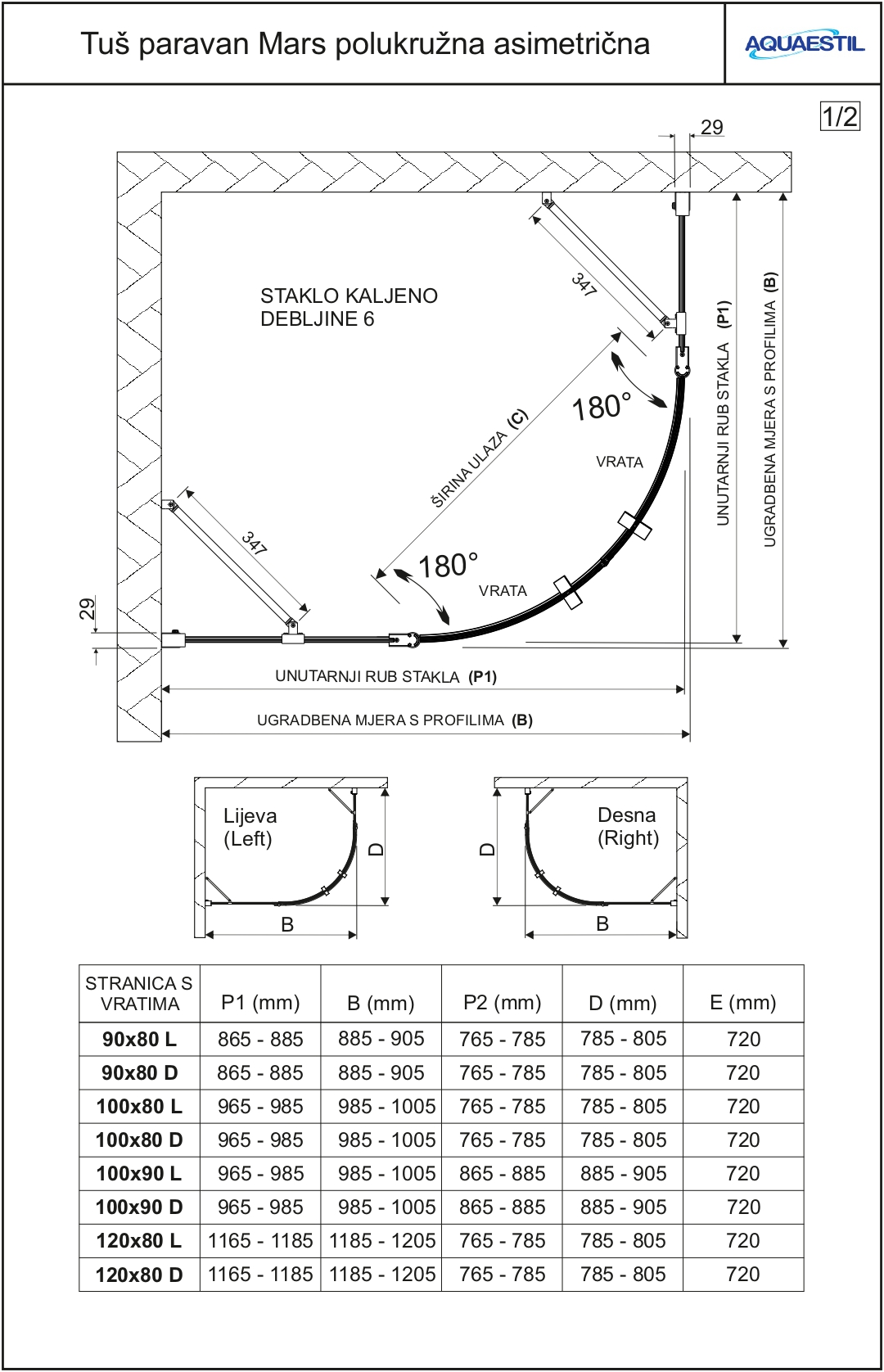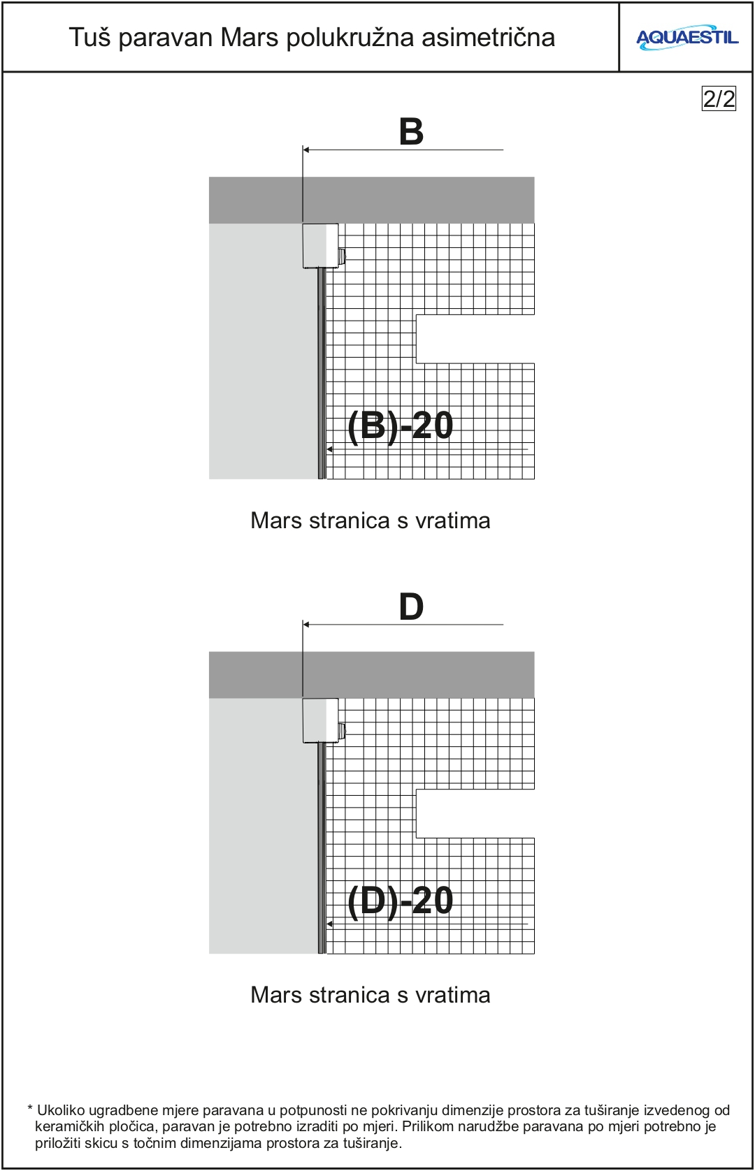 - If the screen is intended to be installed on tiles and not to the shower tray, the order has to include a drawing with exact dimensions of the showering area.