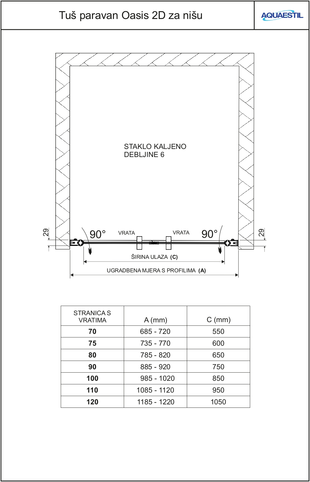 When ordering a shower screen for installation on ceramic tiles, it is necessary to provide a simple sketch with accurate measurements of the shower space.