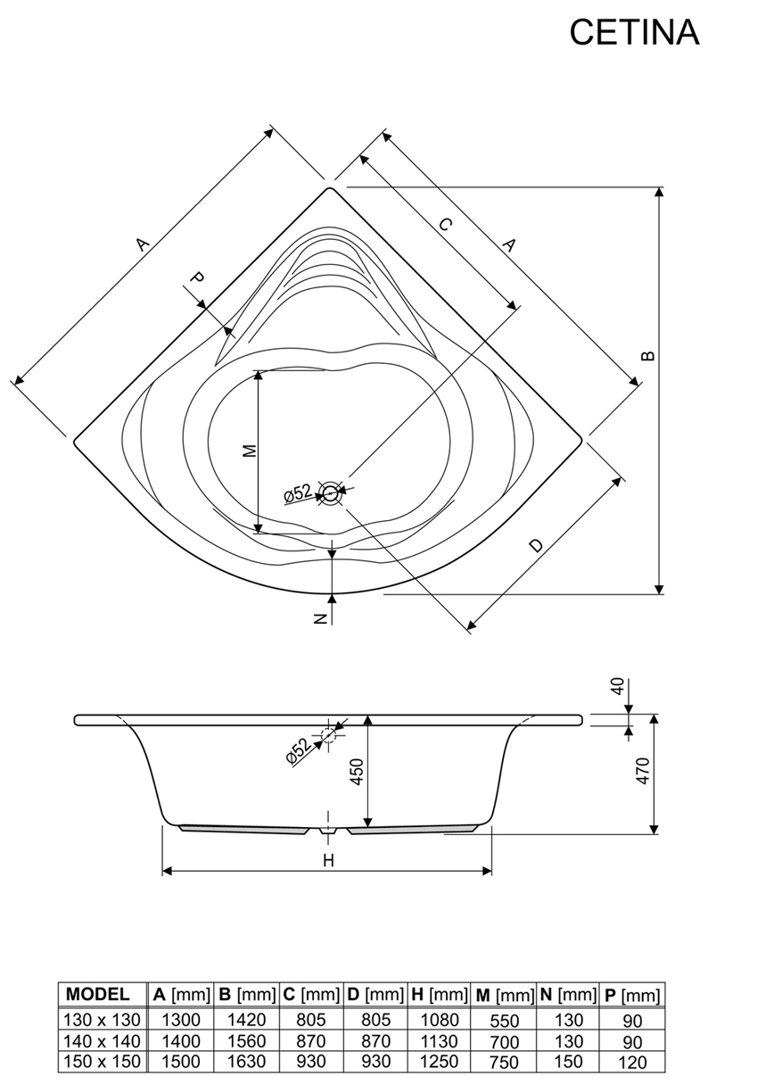 Cetina je luksuzna kutna kada vrlo skladnih linija i blagih zaobljenja, a posebno je prikladna za ugradnju miješalice sa slapom. U kutu kade nalaze se kaskade, koje u kombinaciji s miješalicom i slapom, dočaravaju efekt prelijevanja vode preko stjenovitih obronaka.