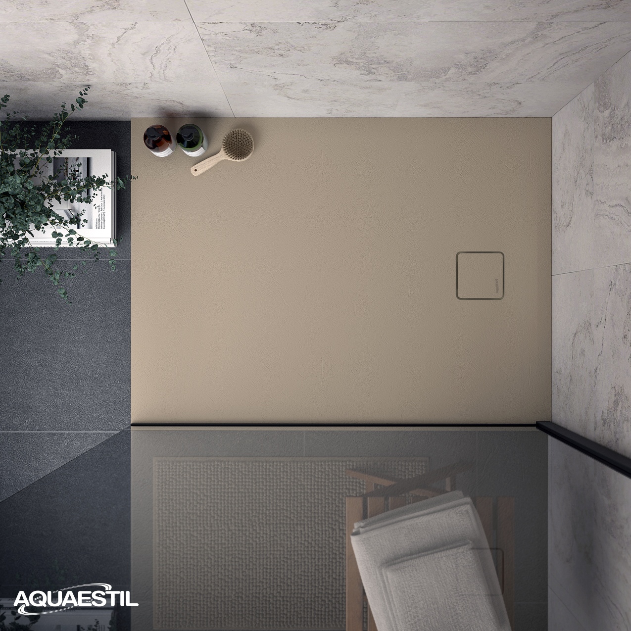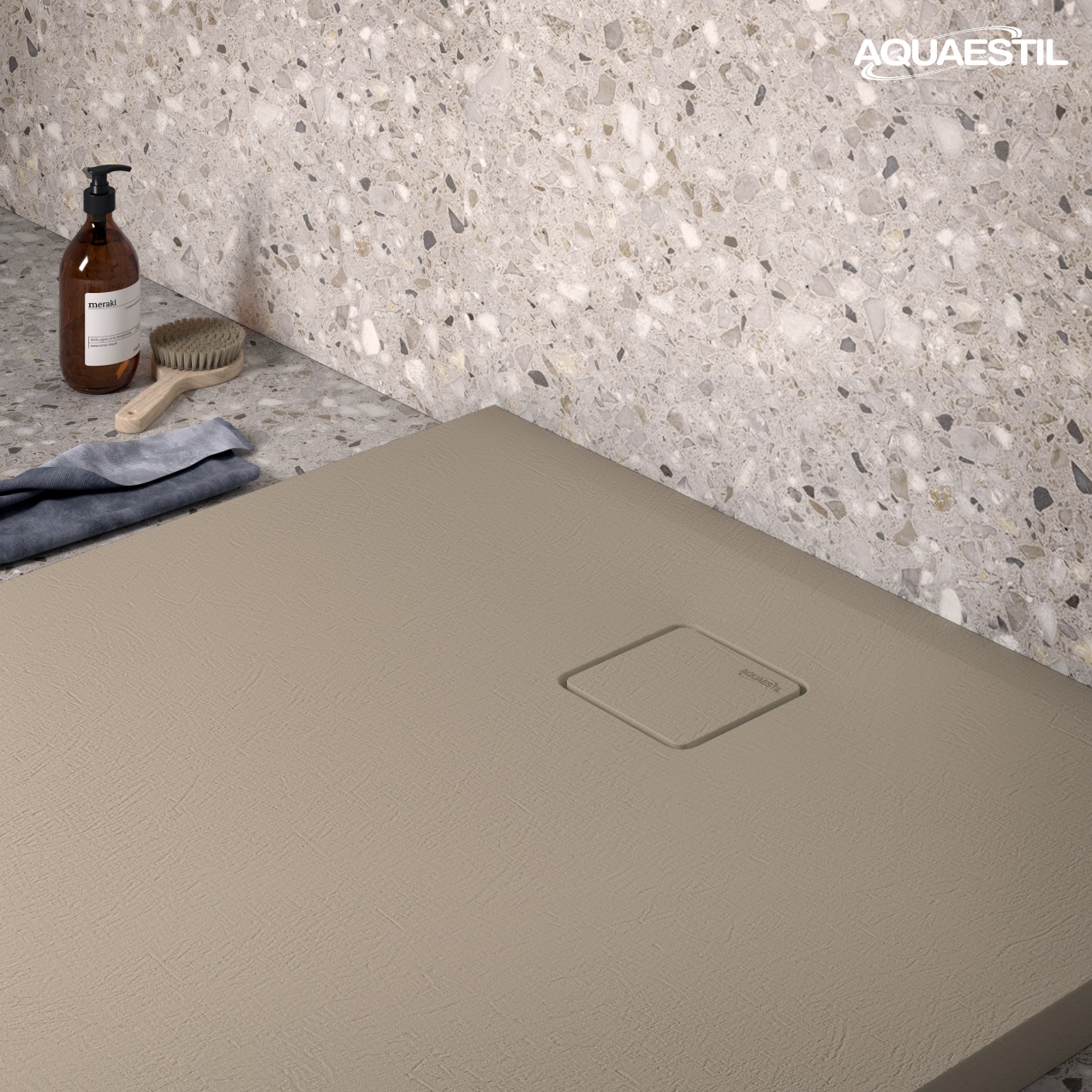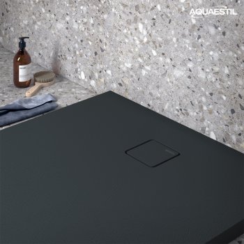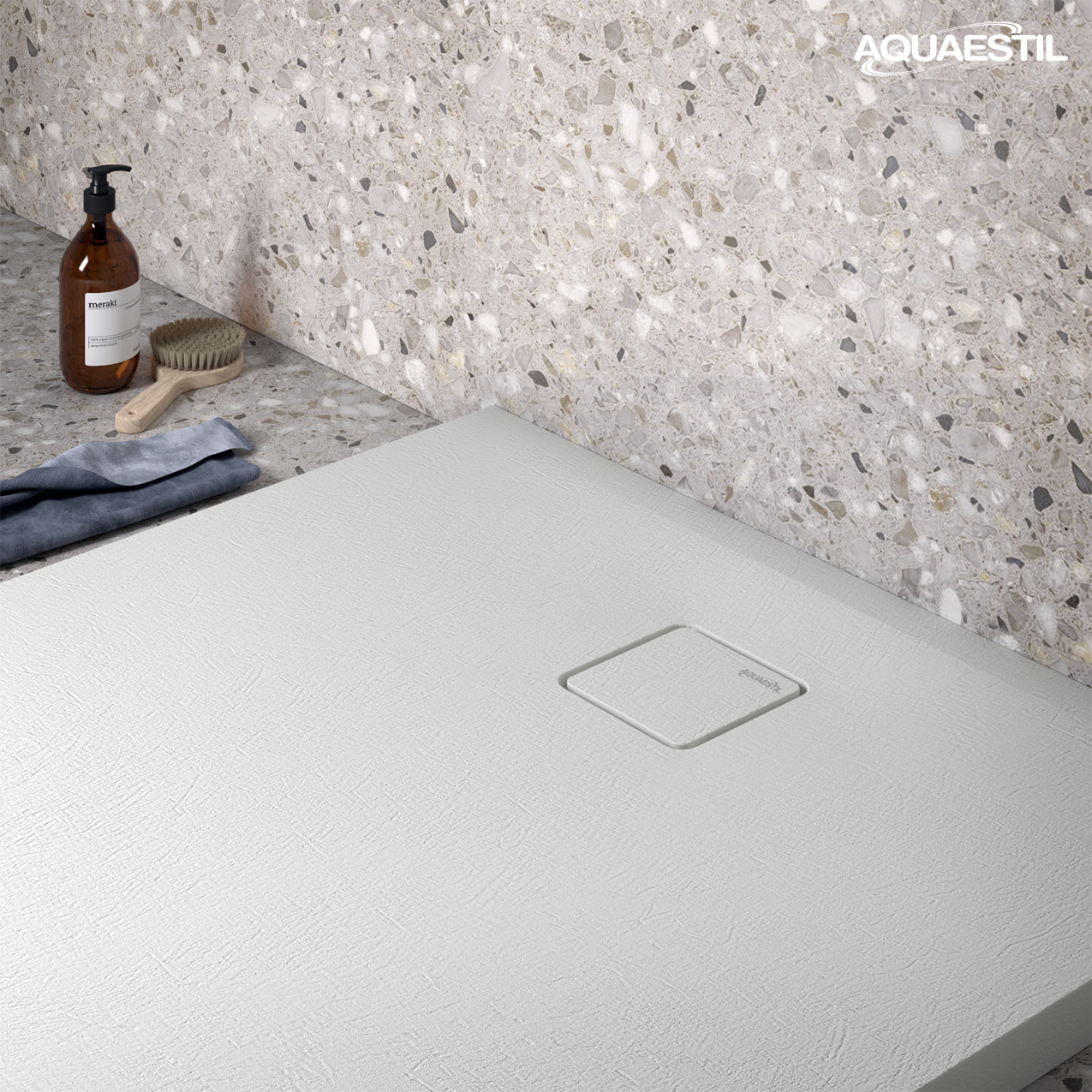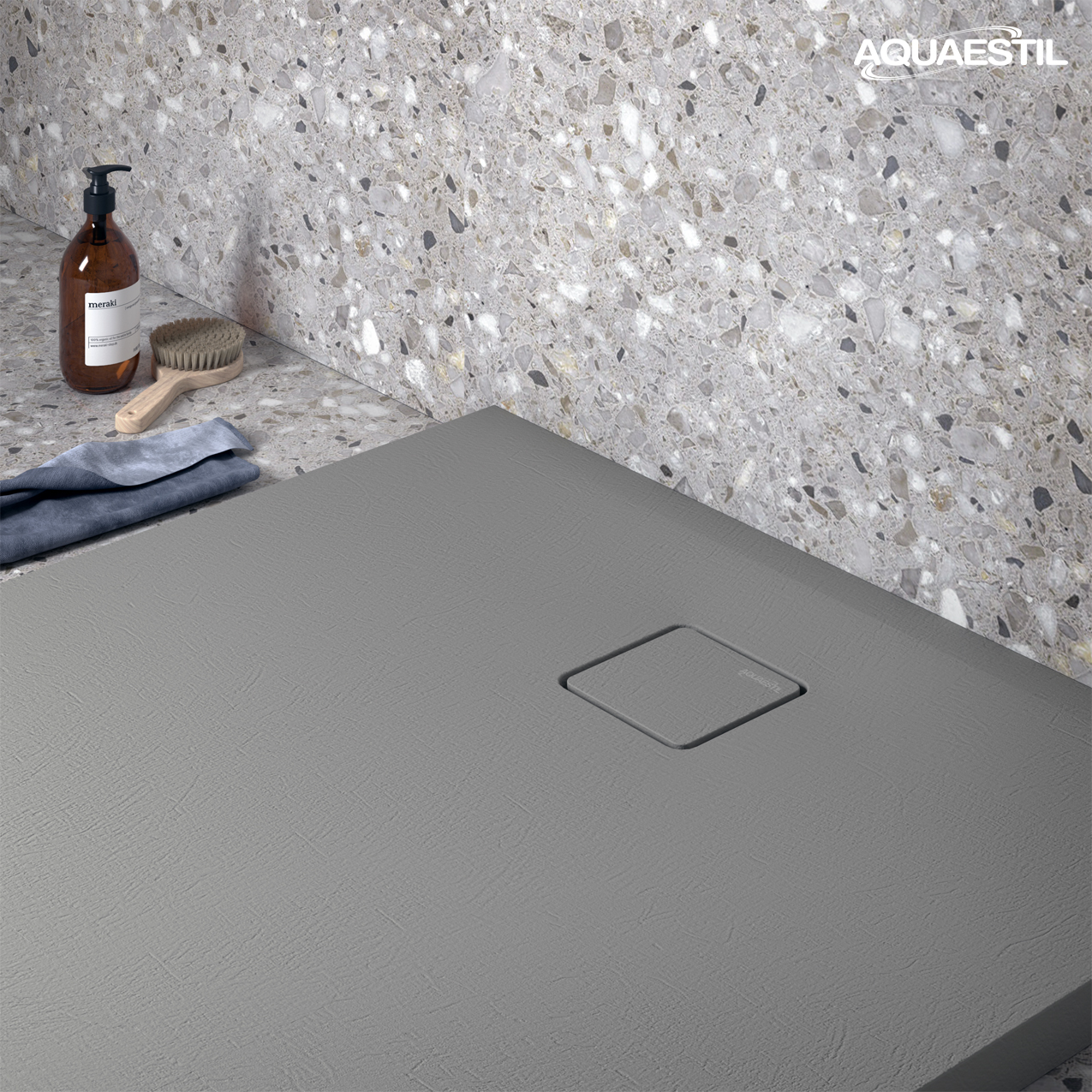 I piatti doccia in mineralmarmo Stone DeLuxe offrono una superficie solida e sofisticata che imita il cemento nei colori bianco, beige, nero o grigio cemento. Un attraente coprisifone realizzato nello stesso effetto della superficie del piatto doccia contribuisce all'aspetto caratteristico dei piatti doccia Stone DeLuxe. Il piatto doccia Stone DeLuxe ha un vantaggio particolare: può essere tagliato in diverse dimensioni in modo da adattarsi alla configurazione specifica della zona doccia.