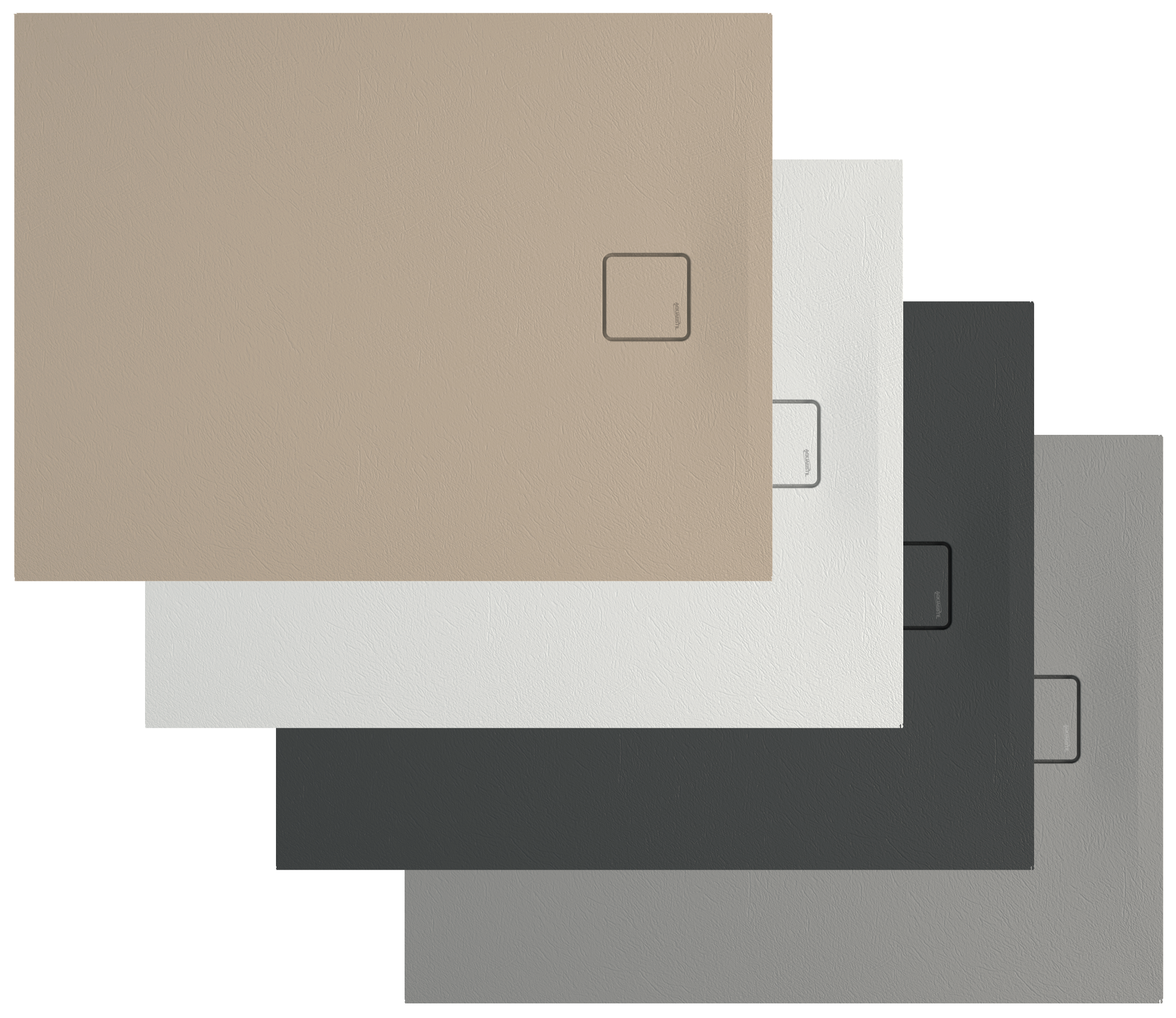 I piatti doccia in mineralmarmo Stone DeLuxe offrono una superficie solida e sofisticata che imita il cemento nei colori bianco, beige, nero o grigio cemento. Un attraente coprisifone realizzato nello stesso effetto della superficie del piatto doccia contribuisce all'aspetto caratteristico dei piatti doccia Stone DeLuxe.
