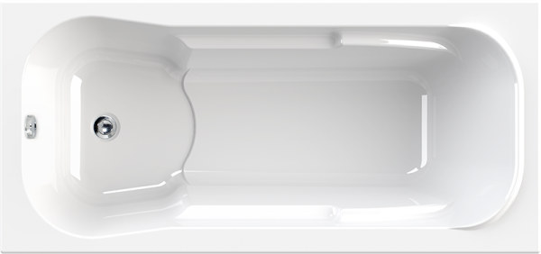 Vasche da bagno rettangolari ergonomicamente progettate con base integrata, set troppopieno-scarico e pannelli collegati senza soluzione di continuità. Disponibili in due dimensioni diverse.