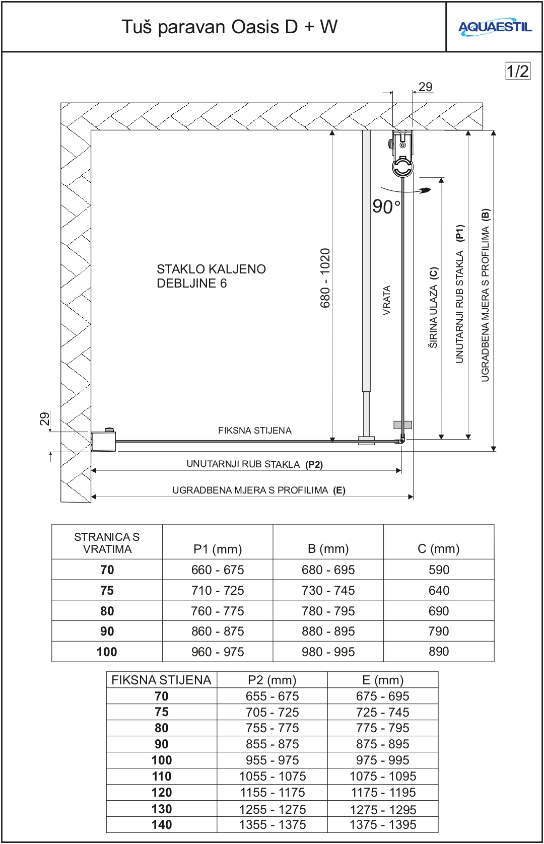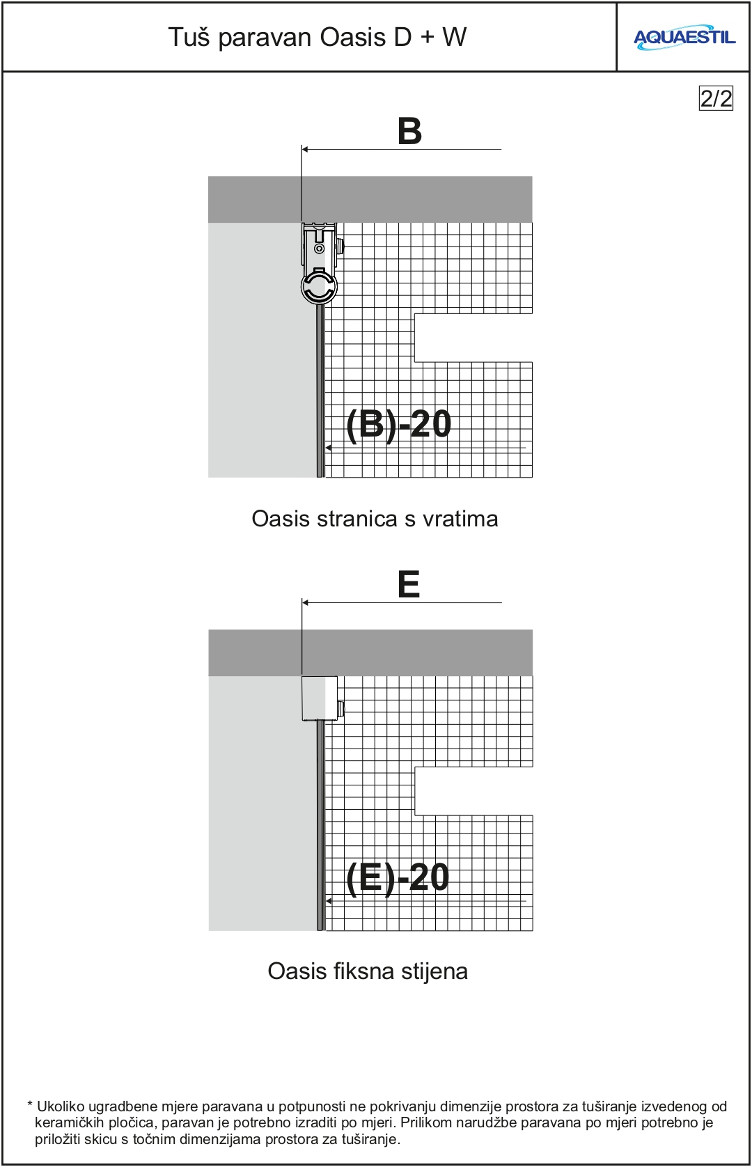 - Če se paravan postavi na ploščice, ne pa na tuš kad, je treba ob naročilu dostaviti načrt s točnimi dimenzijami prostora za tuširanje.